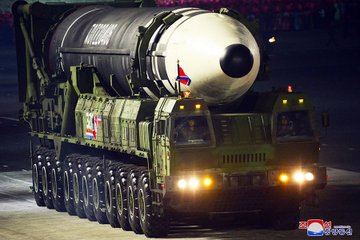 El enorme desfile militar de Corea del Norte mostró un arsenal que debería levantar las cejas en el Medio Oriente. Sacó su misil balístico Hwasong-15 y un gigantesco misil balístico intercontinental que tuvo que ser arrastrado en un vehículo de transporte de 11 ejes.